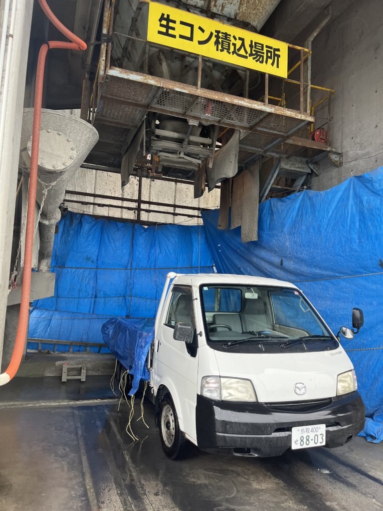 それが終わると直ぐに生コンクリートを取りに行きました。