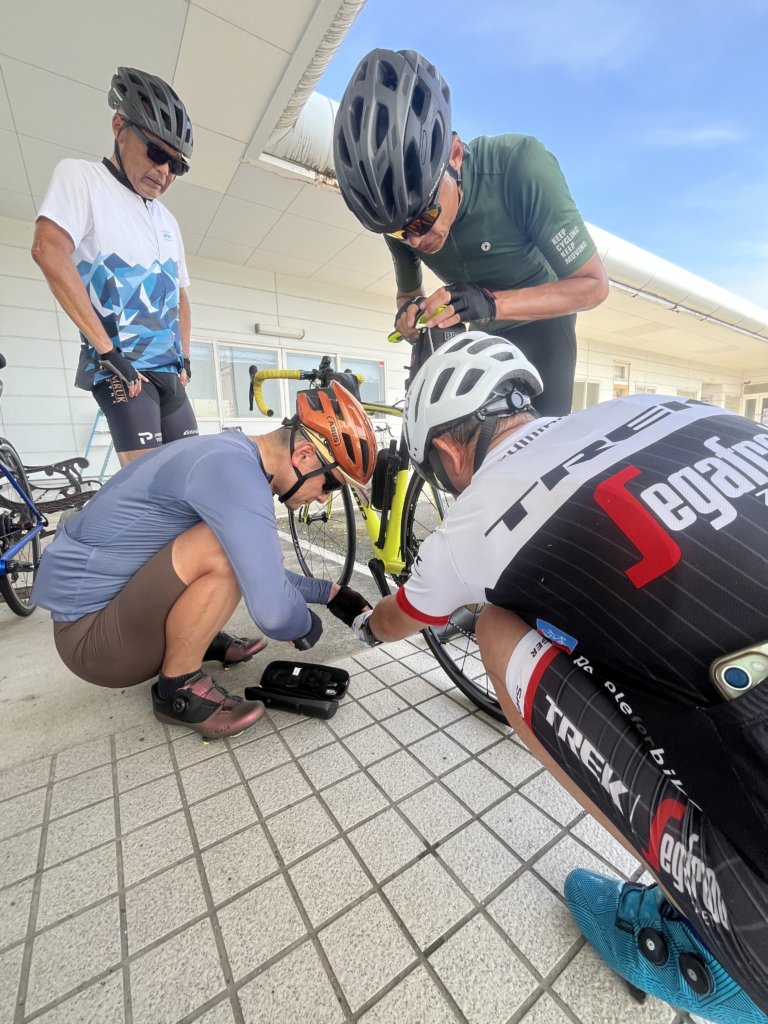 途中の休憩所で私のビンデングのペダルが破損してしまい