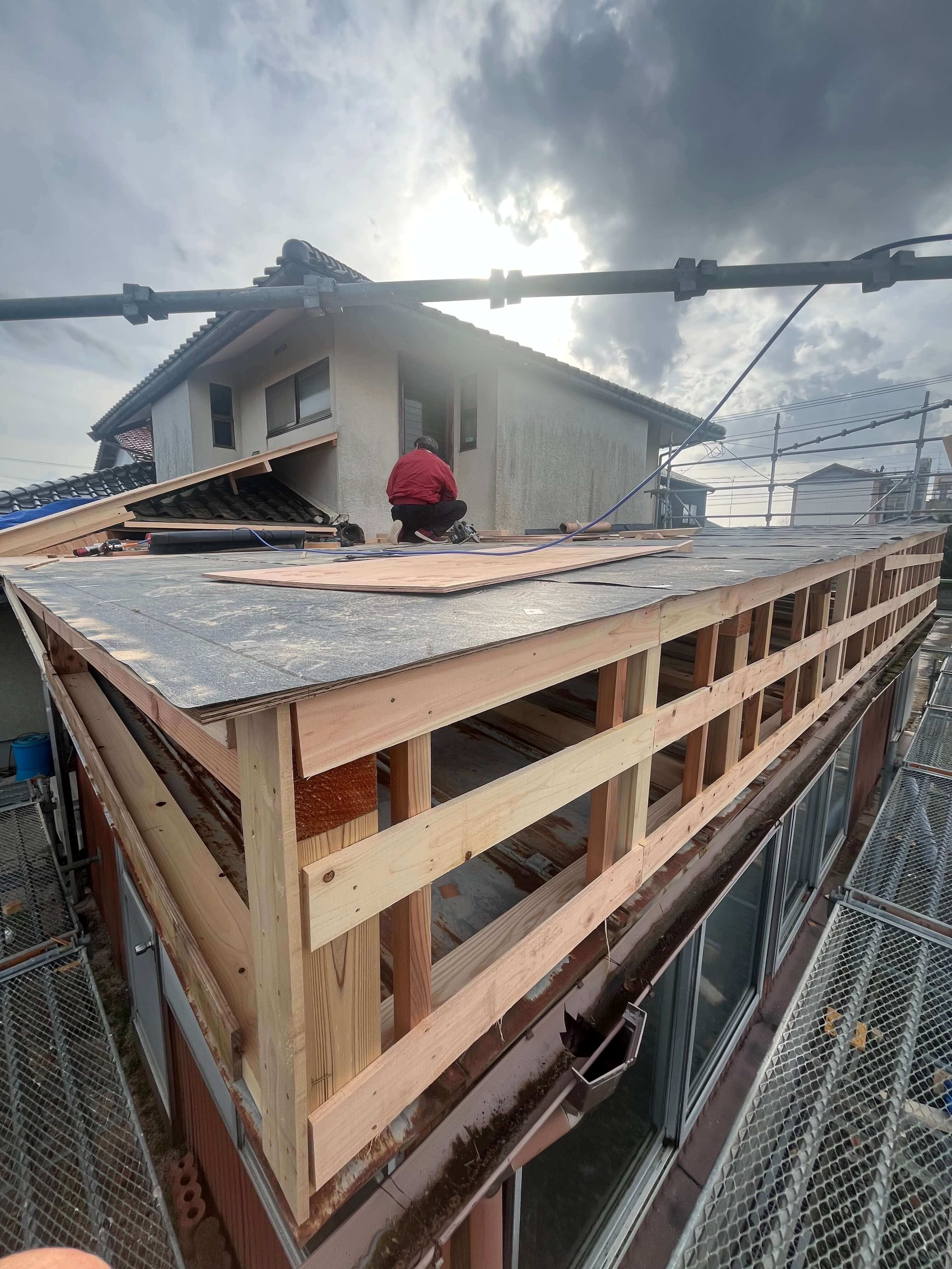 倉庫の屋根の勾配を変える工事~屋根組の巻 境港市竹内町