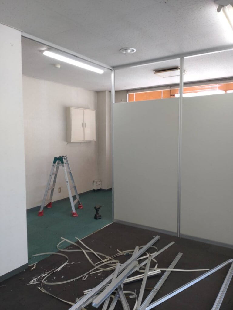 まずはパーテーションを解体撤去して