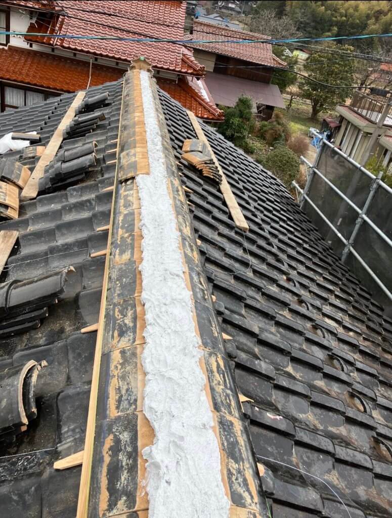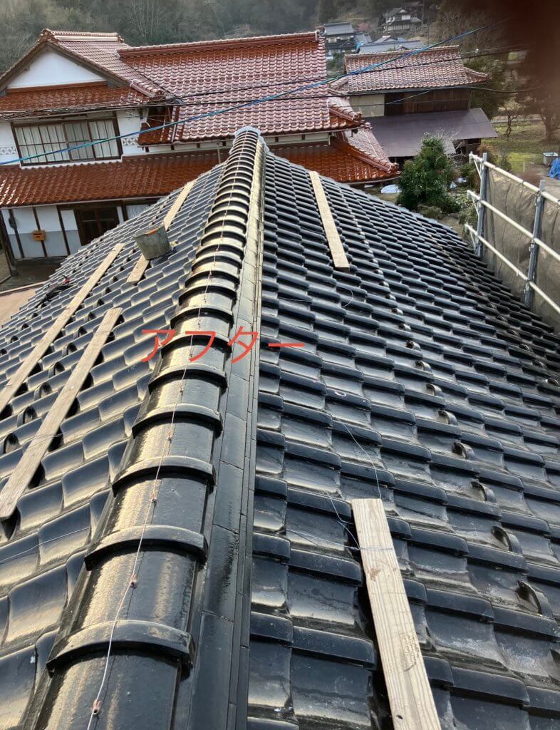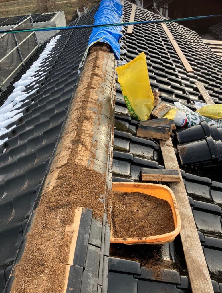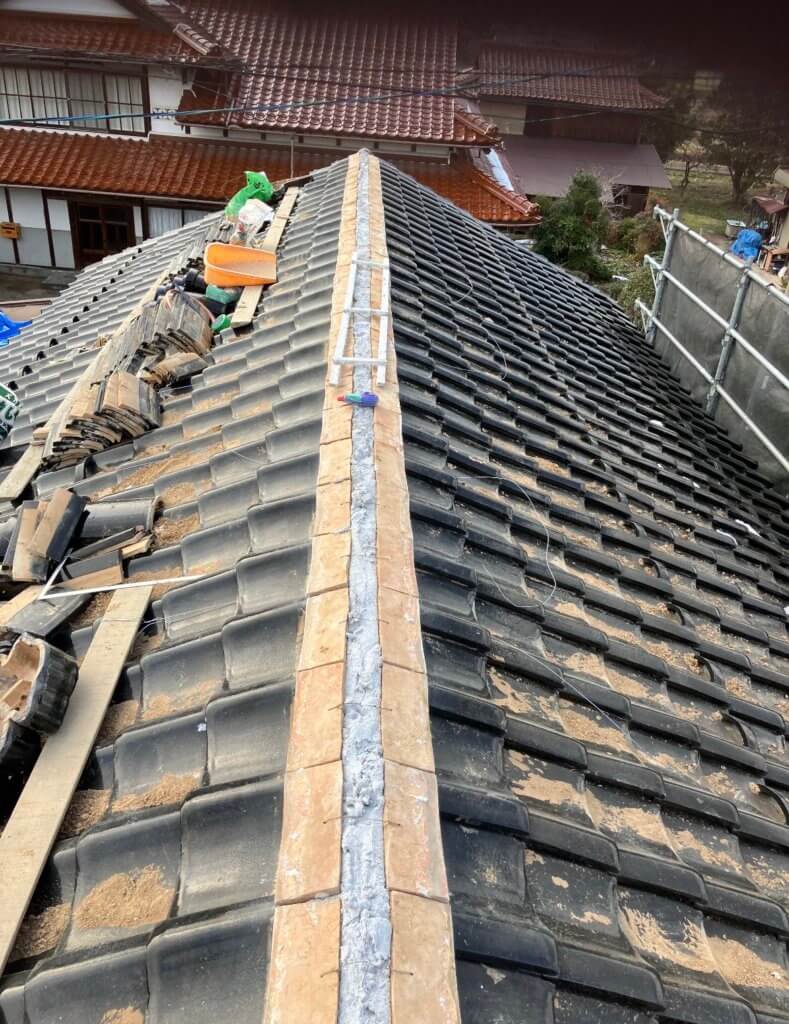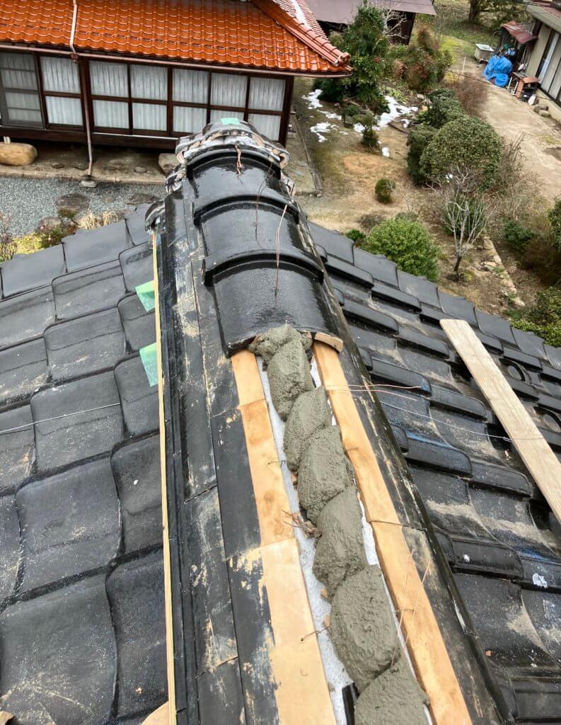 屋根瓦の修繕と棟の巻直し工事の