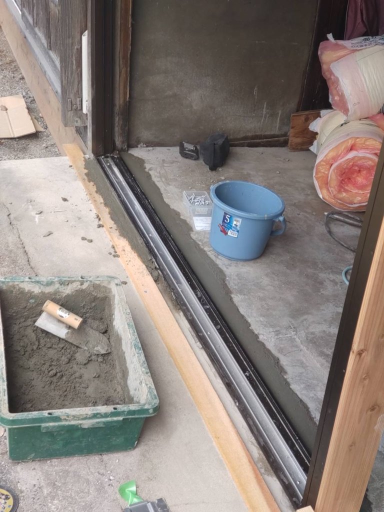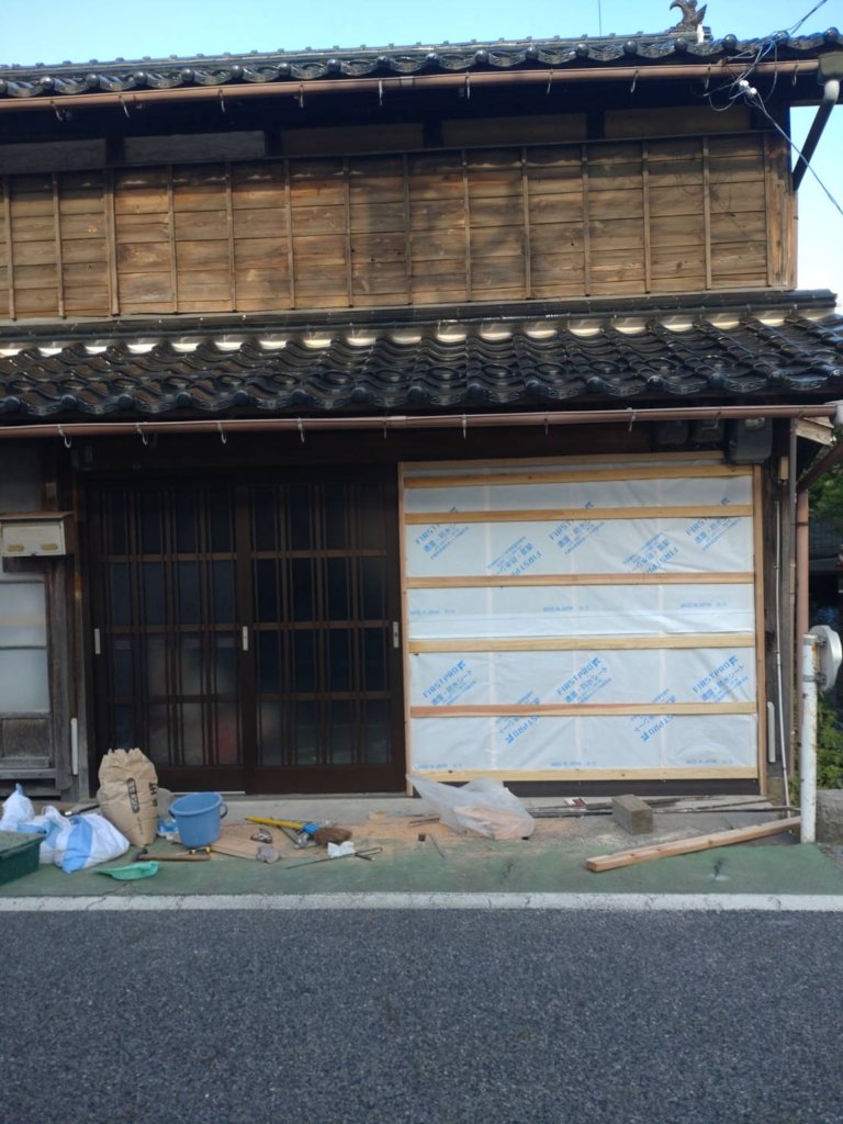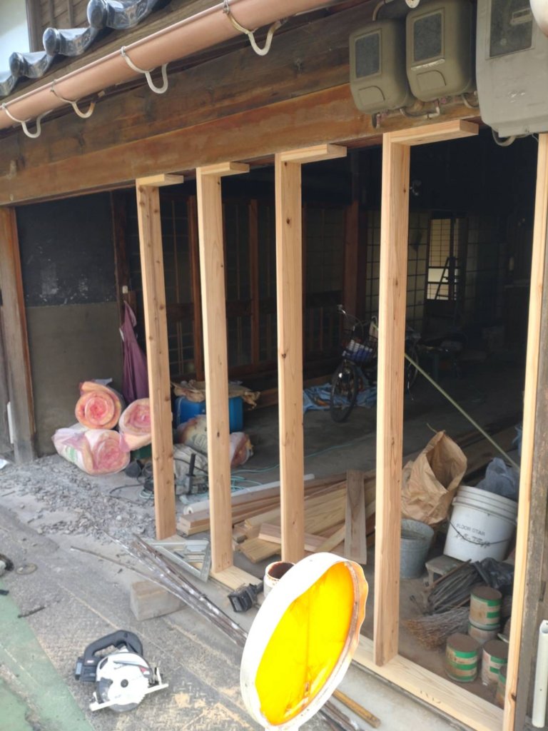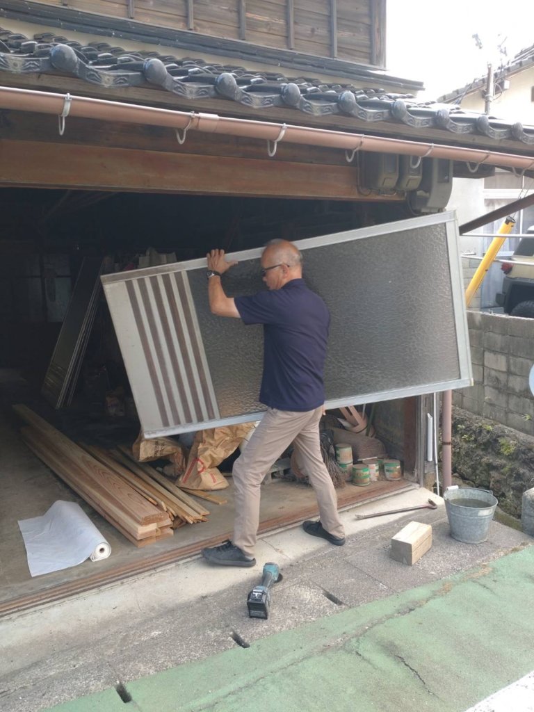 朝から既存の建具を撤去して