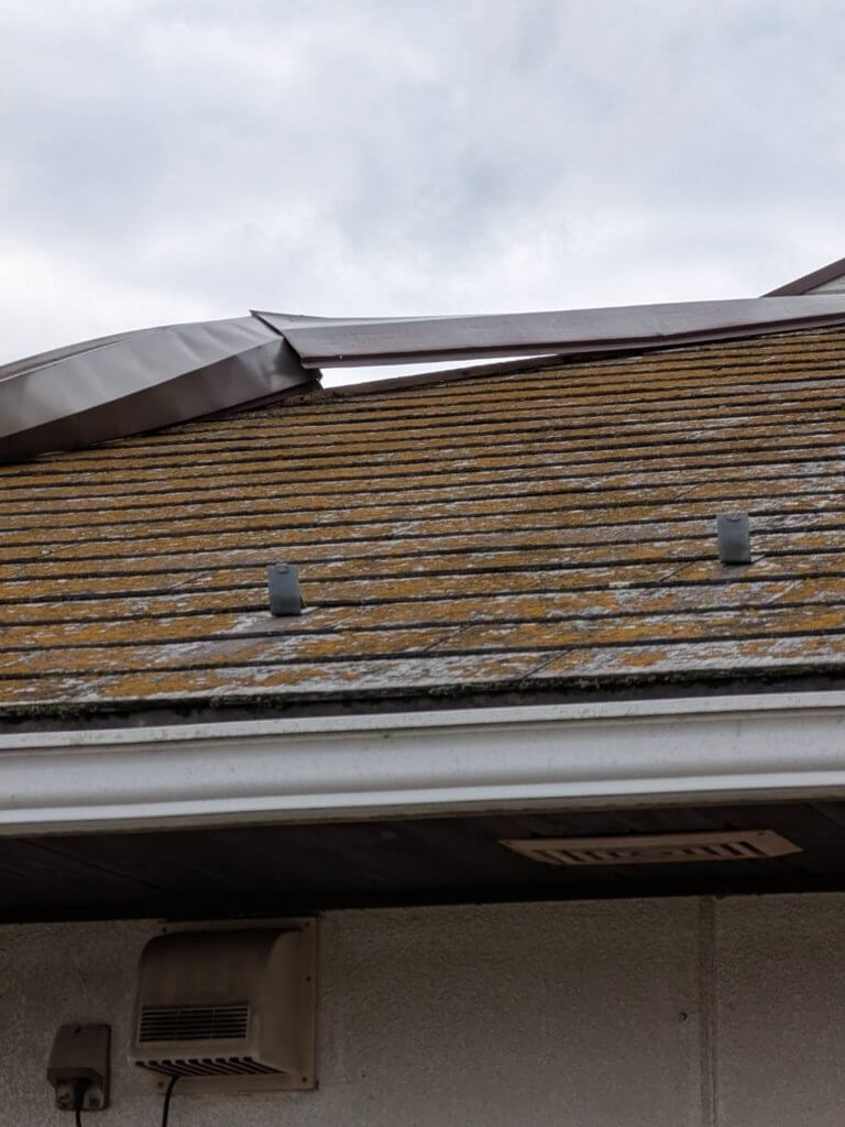 強風で屋根のコロニアルと棟が飛んだので見て欲しいとの